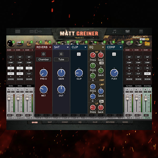 To supercharge Matt's signature drum sample library, we created a powerful, premium mixing engine with built-in DSP modules designed specifically for mixing your best drum sounds. In fact, the mixing environment allows you to make near-exact recreations of your favorite drum mixes. Insert your favorite Drumshotz or one-shot wav files into your mix for layering and stacking intense drum tones. Whether you are trying to capture the sound of your favorite drum mix or forging your own drum sound, Drumforge Matt Greiner gives you the power to get amazing mixes without leaving the plugin.