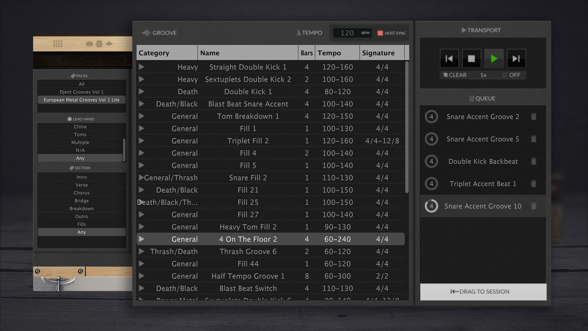 Drumforge Savior includes European Metal Grooves Vol. 1 Lite to jumpstart your creative process. There is a much more complete groove pack for full immersion into European Metal song writing. Click here to download the full version of these grooves as masterfully performed by drum virtuoso Leo Margarit of Pain Of Salvation.